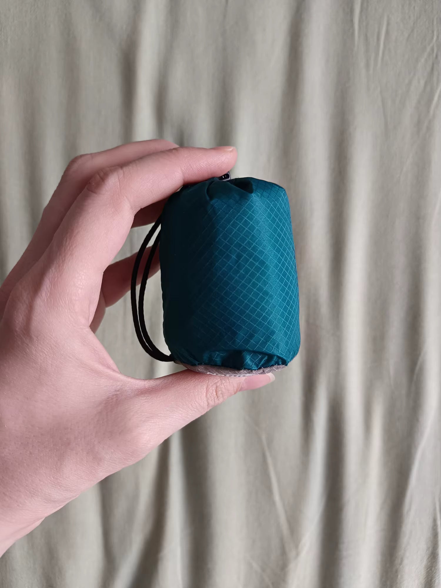 Folds down to fit in the palm of your hand and slips easily into any backpack, gym bag, or carry-on — the perfect space-saver for minimalist travelers.